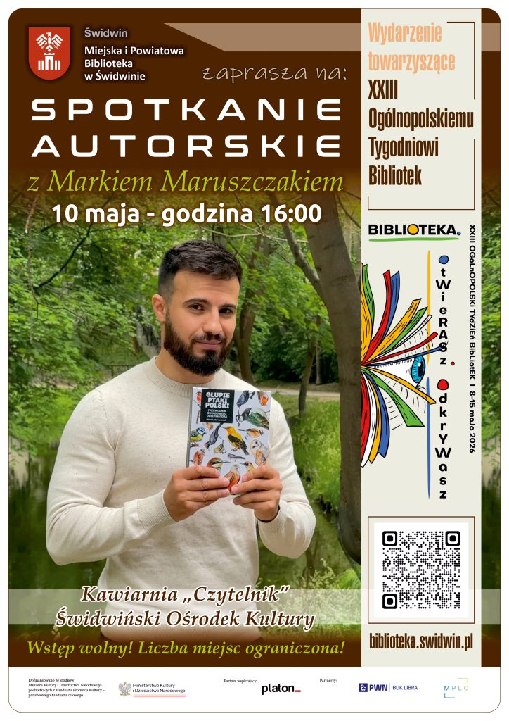 Naszym gościem będzie Marek Maruszczak. Na co dzień projektant gier wideo, po godzinach autor książek, które udowadniają, że przyroda potrafi być… zaskakująco nierozsądna. Na swoim koncie ma m.in. takie tytuły jak „Głupie ptaki Polski. Przewodnik świadomego obserwatora”, „Głupie zwierzęta Polski i jak je znaleźć. Przewodnik świadomego obserwatora” czy „Głupie robaki i inne takie Polski. Przewodnik świadomego obserwatora”, a także serię przyrodniczą dla dzieci i powieści fantasy dla młodzieży („Sally. Trudno być czarownicą”, „Agnes. Bobki i inne świętości”).